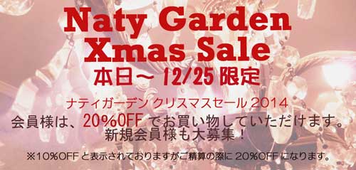 ナティガーデン&ピーコックマーケットオンラインショップでは、12月25日まで恒例のクリスマスセールを開催中です